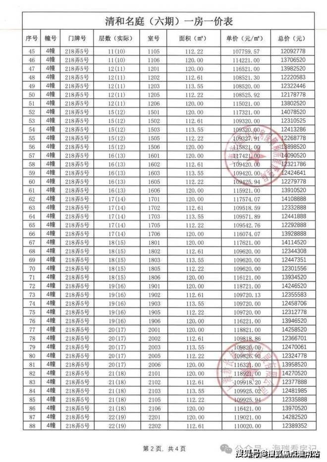 一房一价表如下: