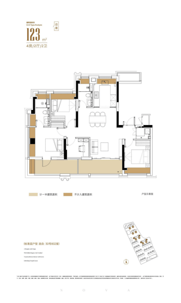 类一梯一户:123㎡户型配备独立电梯厅,增强私密性与收纳空间