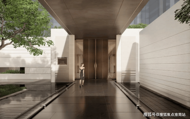伴水归家,羽毛枫四时变幻的叶色,提醒每一位归家者:踏入此门,便是告别喧嚣,回归内心的静谧与从容。约5米宽的流光回廊,打造无风雨归家体系,以香槟铝板为顶、辅以黄金比例柱列,涌泉水钵,展现了【水】的不同表现形式。