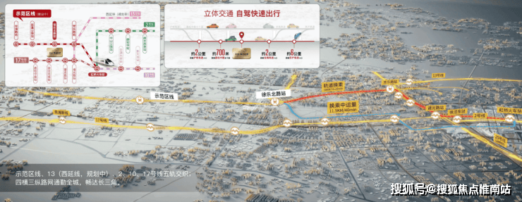 依托示范区城际铁路线设站徐乐北路站(规划中),以及接驳轨交13号线延伸线芳乐路站,打造了 15分钟大虹桥通勤圈!