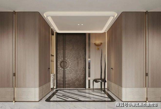 杭州大平层·揽奥云璟售楼处电话☎:400-881-8994(预约看房热线)入门的玄关没有过多的修饰,大门的门套结合右边的柜体做了加宽的处理,这样在视觉上更为整体,不会让入门这块形成L形状在转折的感觉。