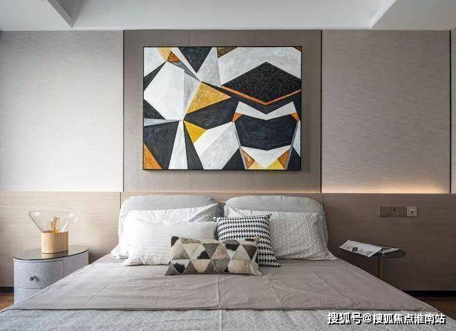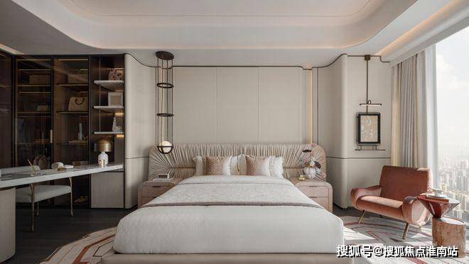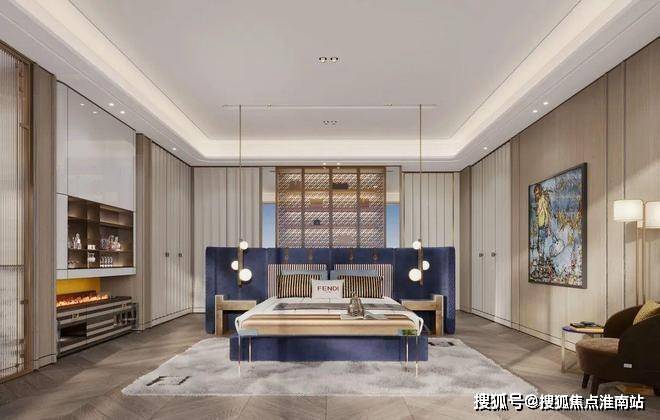 杭州大平层·揽奥云璟售楼处电话☎:400-881-8994(预约看房热线)床头细节用了户型的设计,这样即让背景有了一个围合的感觉,弧形向上的高度让后面的硬包处多了一个灯带的位置,丰富了一些层次。