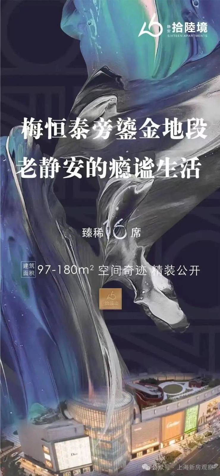 老静安奢装美寓【静安·拾陸境】臻稀16席!建面约97-180m²精装2-3房!