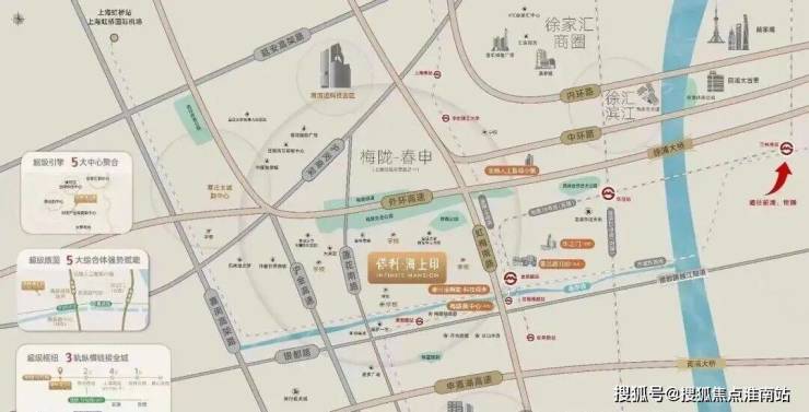 交通方面:梅陇还有15号线(已通车)、19号线(在建中)、机场联络线(即将通车)3轨交汇。再加上虹梅路高架直插中环外环,南侧银都路越江隧道2024年年底建成后,可直通“浦东金色中环”。