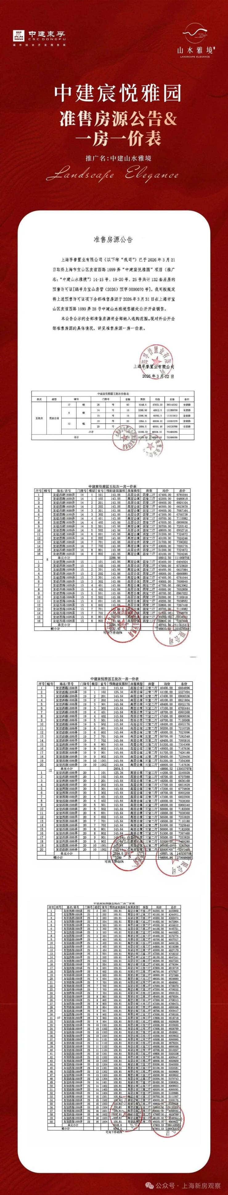 最新消息!宝山顾村板块,7号线地铁盘「中建山水雅境」五批次加推132套建面约100-143㎡3-4房;均价48508元/㎡!认购金35万!认购时间:3月23日-3月25日;无疑是当下买到外环附近的低门槛置业良机!