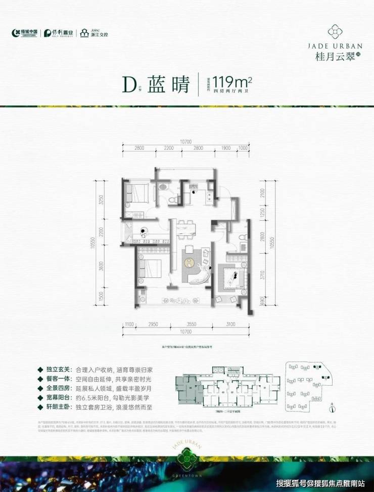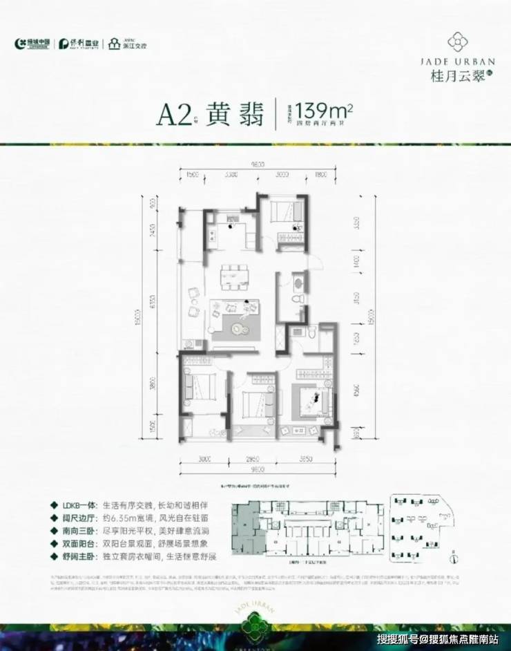 绿城桂月云翠售楼处电话:400-8818-994✔✔│绿城桂月云翠官方售楼处地址发布:杭州绿城桂月云翠官方售楼处电话400-8818-994A户型:约139㎡户型,四房两厅两卫,三开间朝南,全明边厅设计,大横厅带大阳台,采光视野好;三个卧室均朝南,带阳台或飘窗,面宽大、采光好;主卧大套间、阔绰收纳空间。是绿城过往的项目中难以见到的。餐客厅一体,连带一个约6.35m左右阳台,景观视野堪称一流。