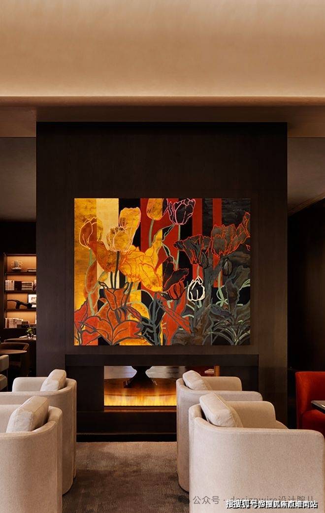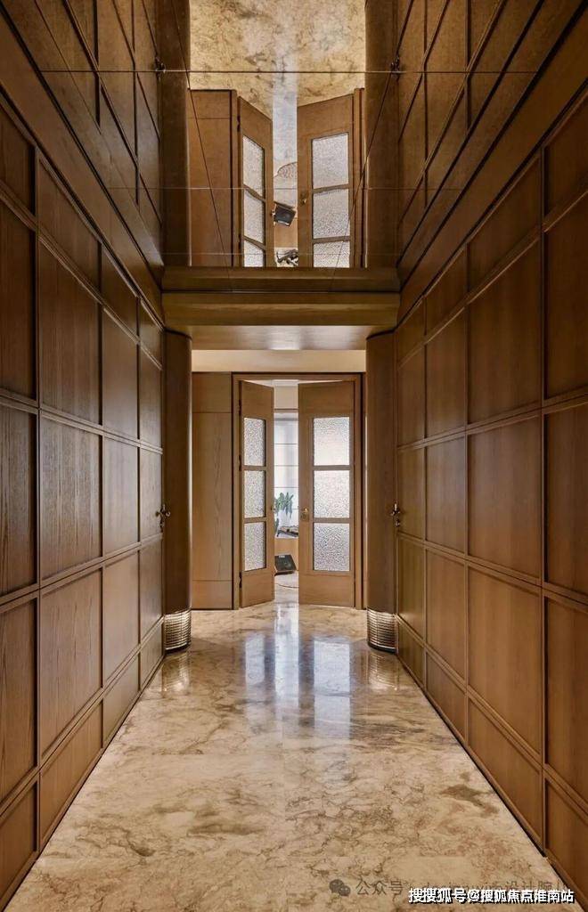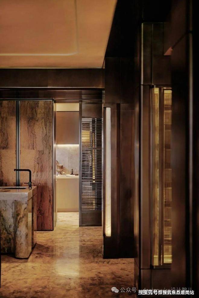 两梯一户的格局,皆拥有着独立的电梯厅,入户玄关如同艺廊,彩云飞奢石地面,与锈镜天花呼应。墙面上有写意画作✨✨✨【万科傲舍云镜】售楼处热线预约:400-891-9910✔✔✔❤❤❤与一双立灯,晕染出归家意境。