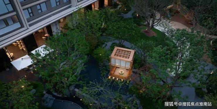 生态置石错落有致、细水流淌其间,如低语轻吟,悄然抚平每一位归家人的心绪;阳光穿过枝叶,在 林下小径洒下斑驳光影;娜塔栎挺拔、乌桕斑斓、羽毛枫婆娑,四季轮转间,与中央水景共绘一幅流动的生态画卷,这不仅是栖居的诗意,更是日常的温度。