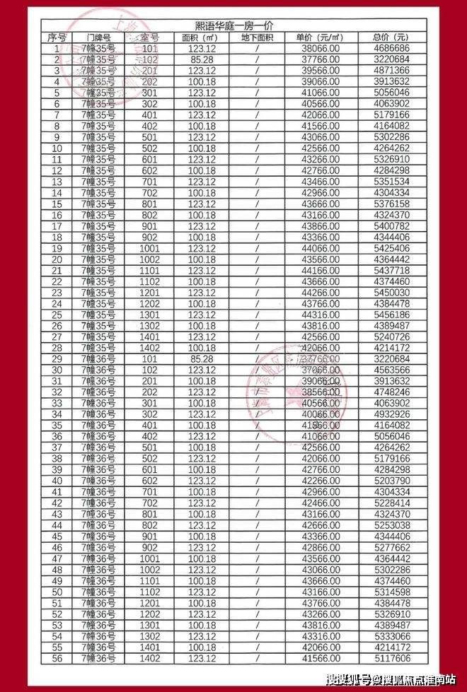 项目2期一房一价表▼