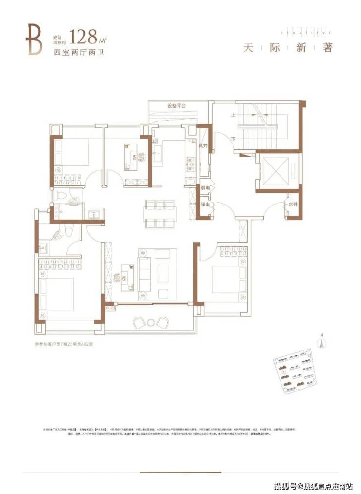建面约128㎡4房2厅2卫户型