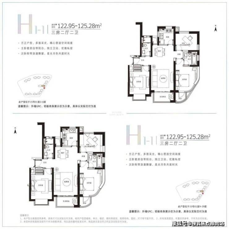 约122-180平方米的三房两厅两卫,为追求舒适生活的家庭提供了更多空间;