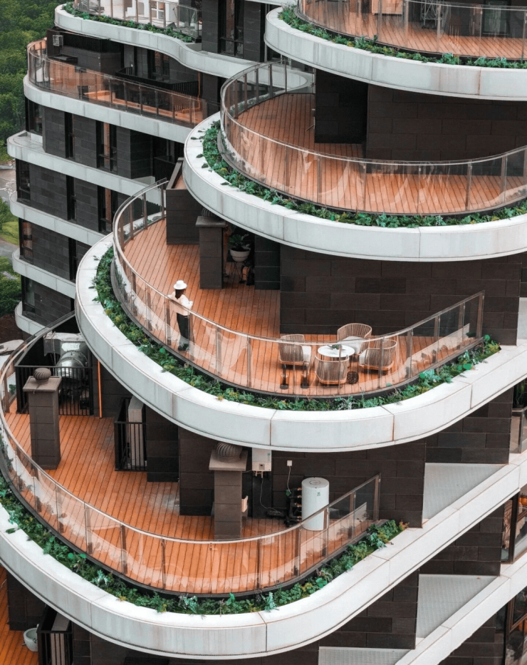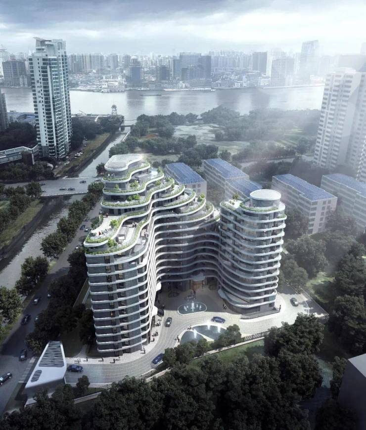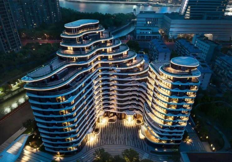 前卫建筑设计:由国际事务所EID Architecture打造,采用退台式波浪立面+LOW-E玻璃幕墙,获国际高层住宅设计奖