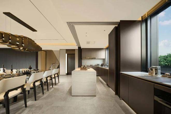 下叠空间则以另一种语言诠释着生活的温度——在这里,庭院与室内的边界被温柔消弭,高定沙发正静静等待归人,大理石餐桌上凝固着月光般的雕花。这些器物会记住生日蛋糕的甜,也包容深夜归来的苦——整装交付的不仅是家具,更是未来生活的全部脚本。