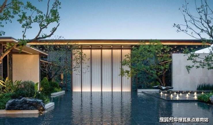 穿过归家大堂,入眼的便是大片的镜面摩登水院,涌泉叠水,高低错落、动静相宜。 景观 设计团队更是在水院里做了一个下沉式卡座,未来业主可以在这里闲坐观景,与三五好友可以畅聊天地。