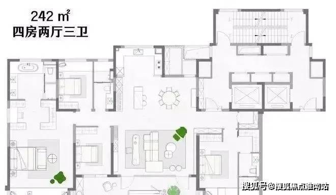 两个户型格局基本一致,若是抢不到240㎡户型,该户型也是不错的选择。