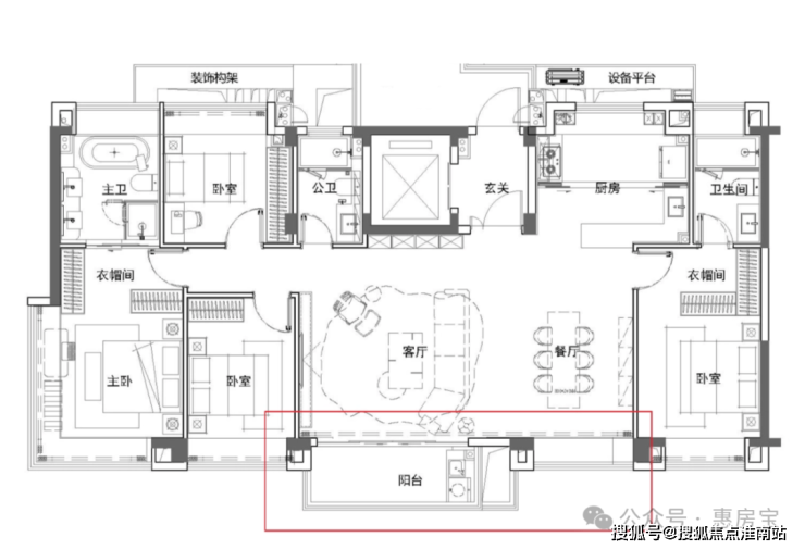 下图为边套户型过程稿,红框线范围内可能会对另外一个次卧的飘窗位置进行优化,优化为阳台,也就是南白两个次卧均带阳台!