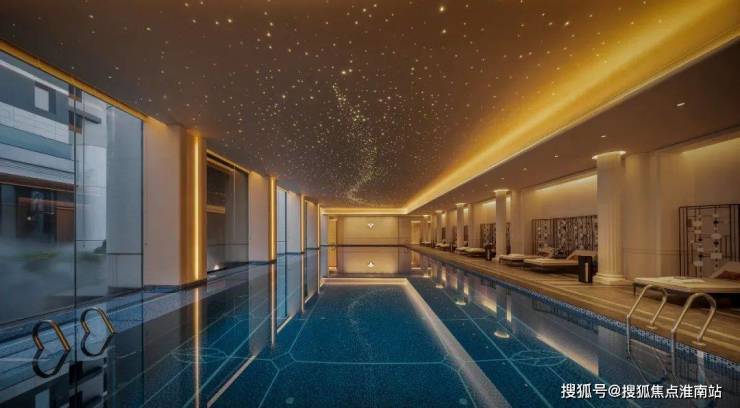 约2000㎡ 下沉式会所,配置星空顶恒温泳池、WaterRower品牌健身房、私宴厅以及3D室内高尔夫球室(高尔夫尊/同等品牌)等等。