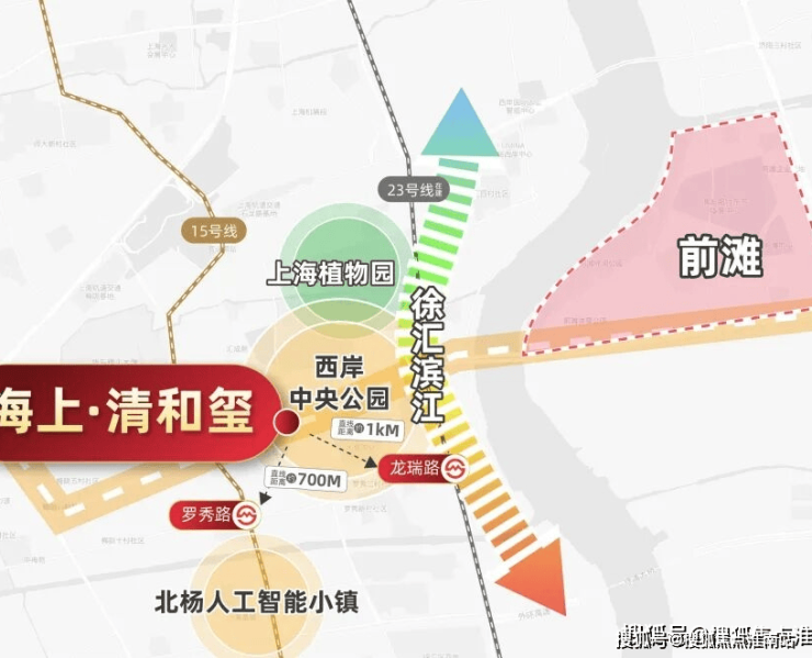 同时直线距离徐汇滨江约800多米,直线距离北杨人工智能小镇约700多米,直线距离前滩约1.7公里。