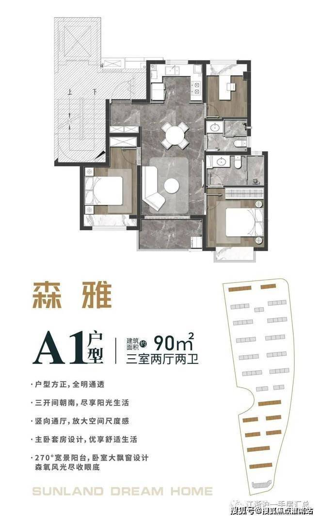 森兰·航荟名庭售楼处电话:400-9966-224【预约☎】要知道市场上大多数项目,建面约90㎡左右的户型都基本做2房设计,3房一般都要100㎡左右。「森兰·航荟名庭」建筑面积约90㎡A1户型不仅实现了3房功能性一步到位,还有2卫配置!降低当下置业成本的同时,给购房者未来在二手市场也能抢占先机!户型方面,该户型是南向大面宽设计,足以容纳主次卧+客厅三开间朝南,采光性能优异!客餐厅一体化设计,减少过道面积浪费,视野也更开阔。U字型厨房设计,更符合人们料理动线,利用率更高。客厅则是竖向通厅,方正明亮,可容纳全家的欢聚。