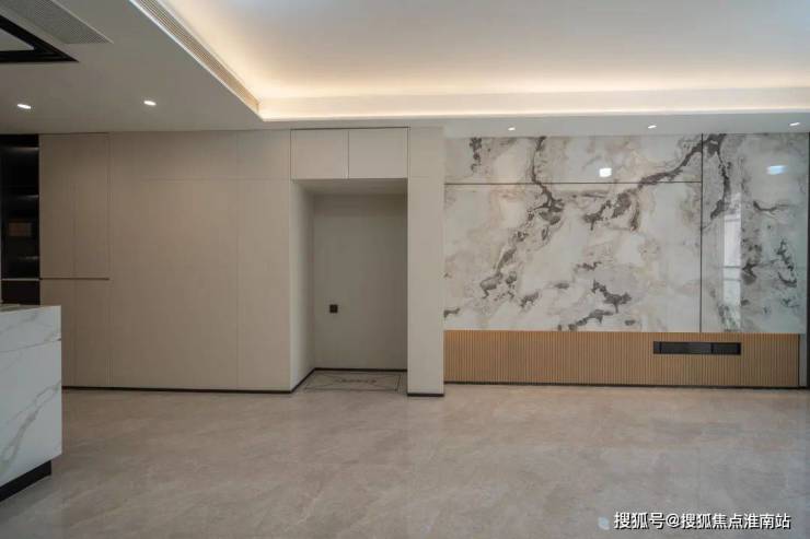 不仅有日立中央空调、菲斯曼锅炉地暖,甚至厨房超配五大件(洗碗机、蒸烤一体机、油烟机、燃气灶、凉霸),还有客厅、主卧双背景墙,岩板、木饰、墙布等,质感满满。