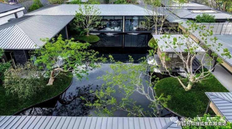 四時佳興:以诗意东方为境,前庭水景营造五座浮岛,彰显央企修为