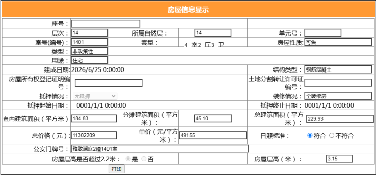 总户数:259户