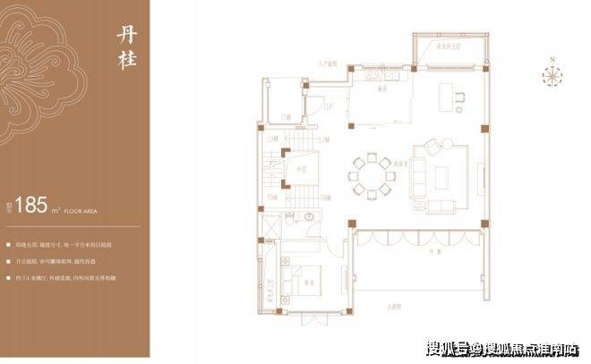 房屋实际可用面积要比户型图标注面积大一些,以“丹桂”户型为例,户型图标注的建筑面积为185m²,但是层高达到9.9m,未来完全可以搭建二层,搭建后,地上使用面积可以达到约280m²左右。