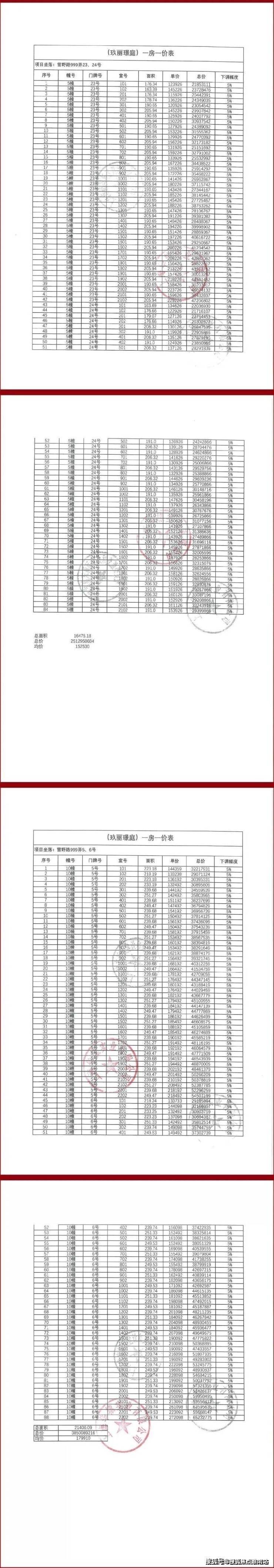 五批次最新一房一价表:
