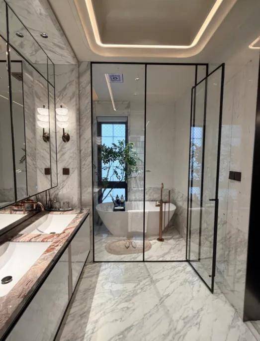 整个项目审美高度统一,从建筑、景观、户型全维度定制,云集大师设计团队:李益中团队负责室内设计,GAD团队负责建筑设计,梁志天操刀风貌产品,大区的施工则是由天华和德森完成。