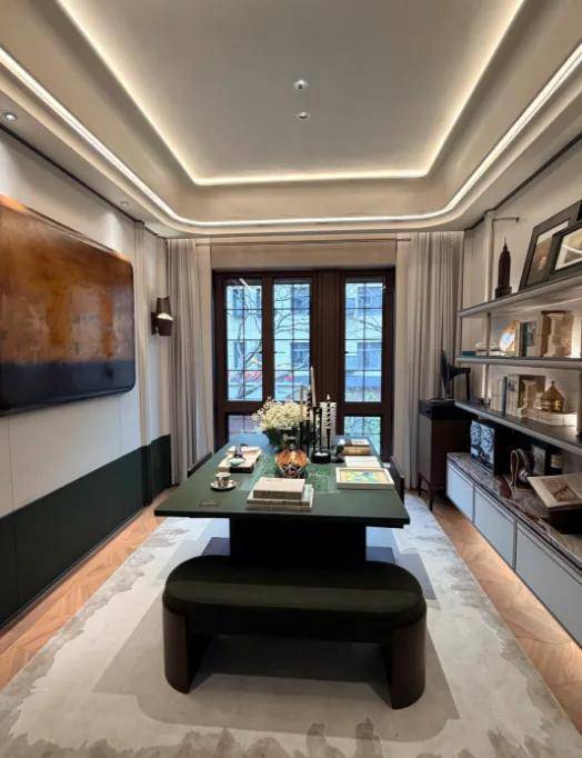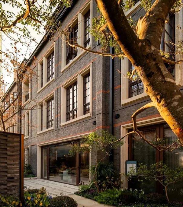 风貌别墅延续了上海石库门风格。青砖黛瓦,红色腰线,南向面宽最大的大概约15米左右。从一扇门、一扇窗中保留和创新,同时区别“里弄式”别墅的小格局、少采光、多浪费;空间布局灵活,满足不同高阶家庭生活需求,递呈出静安苏河畔难得的海派浓荫别墅。