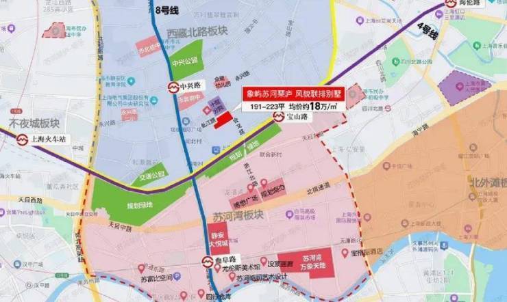 交通配套:距离8号线中兴路站直线约400米,距离3/4号线宝山路站直线约300米。驾车500m直通南北高架,纵向穿越上海市区,转内环、中环、外环以及延安路高架