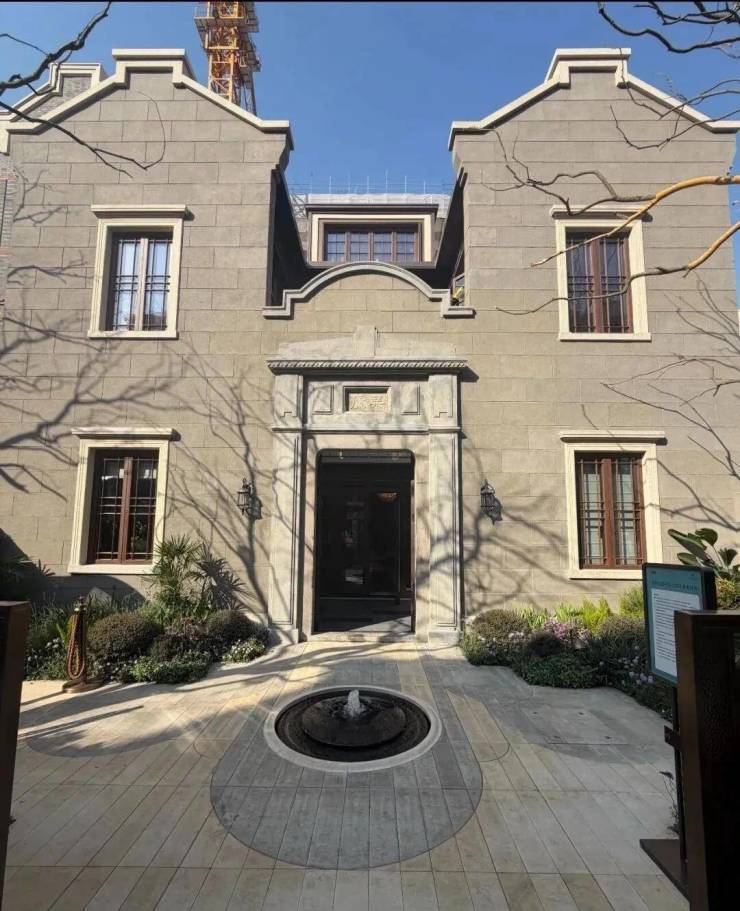 外立面采用石材+金属线条,融合海派风貌与现代美学