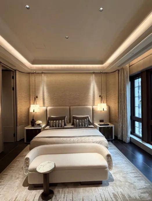 主卧:独立衣帽间+双台盆卫浴,L型飘窗