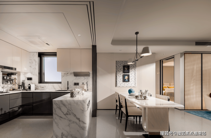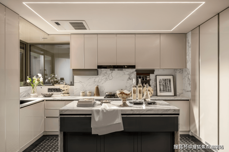 整体动静分区的格局下,U型厨房不只是烹饪场域,更因融入“社交属性”而成为家庭互动的温情角落,烹饪的同时可与客厅的家人交流。