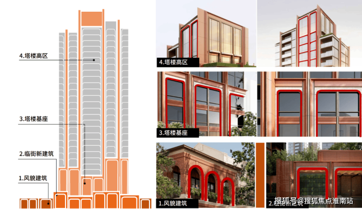 高层基座溯源石库门建筑精髓,复刻经典拱券符号;中段以通透玻璃幕墙搭配流线型金属线条,营造国际前沿的现代质感;顶部“冠冕”造型,进一步升华昭示性。