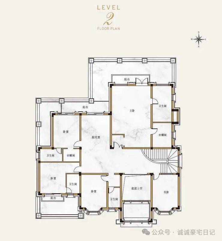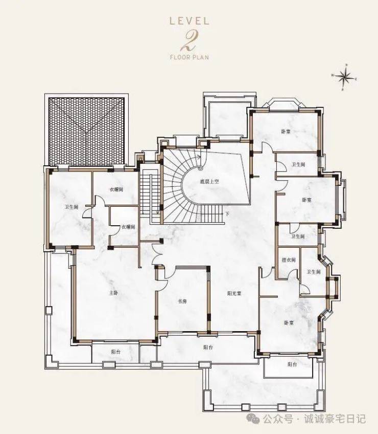 格局:7 房 4 厅 6 卫,南向面宽约 30 米