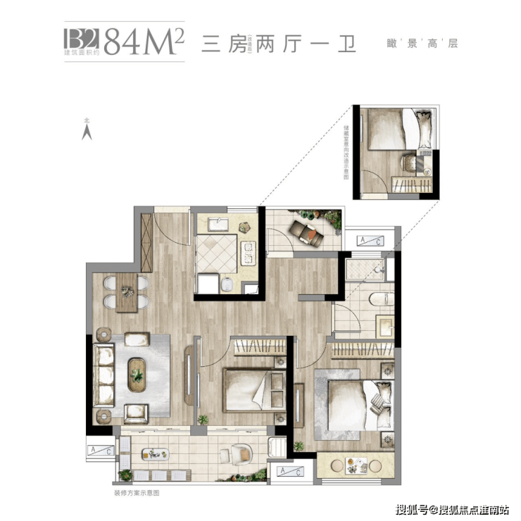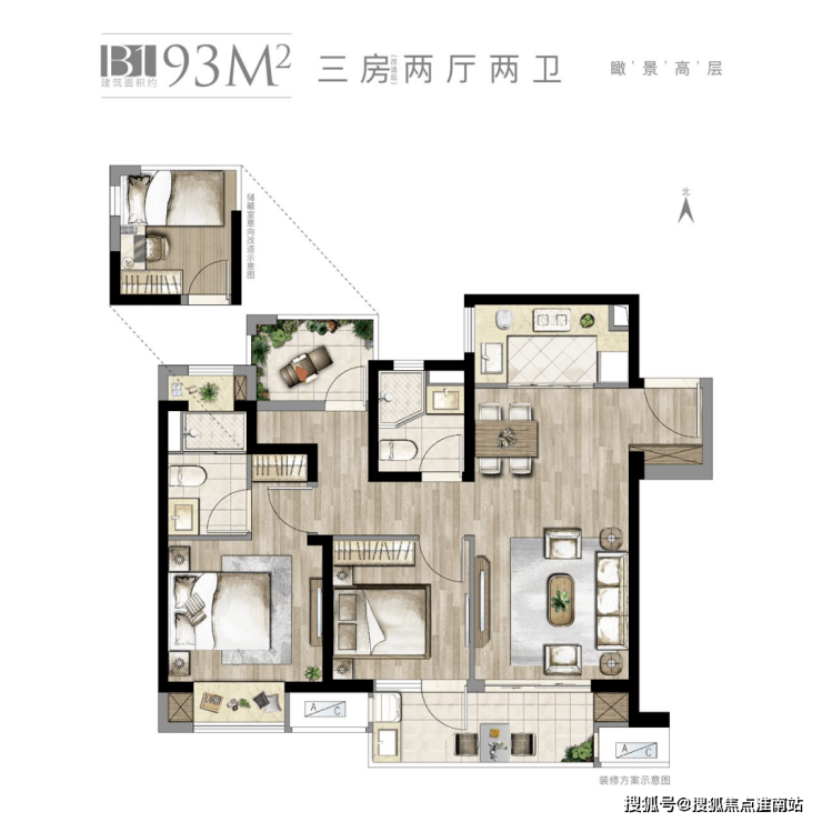 四季健康花园售楼处电话:400-998-9694洋房:本案95㎡户型,改造后是一个舒适型的三房二厅二卫的户型,约5.5米朝南横厅设计,采光面非常宽,一梯两户的设计超高得房率。