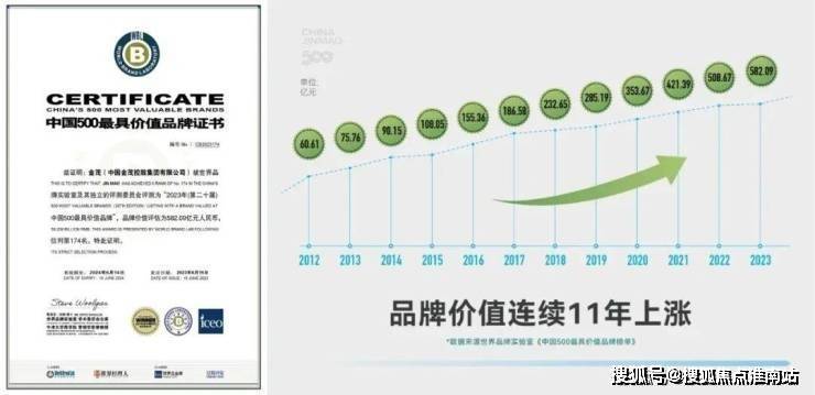 自2005年以来,金茂已经连续19年入围“中国500最具价值品牌”榜,2023年更是以582.09亿元的品牌价值位列第174名。(数据来源于金茂官网)