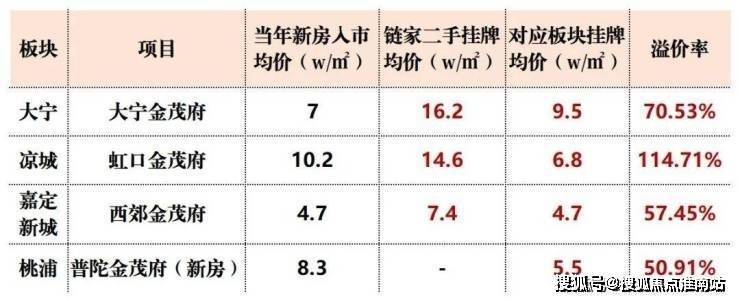 据贝壳数据统计,金茂府与同板块二手房相比,挂牌均价比板块均价高出50%以上,最高溢价甚至突破114.71%!