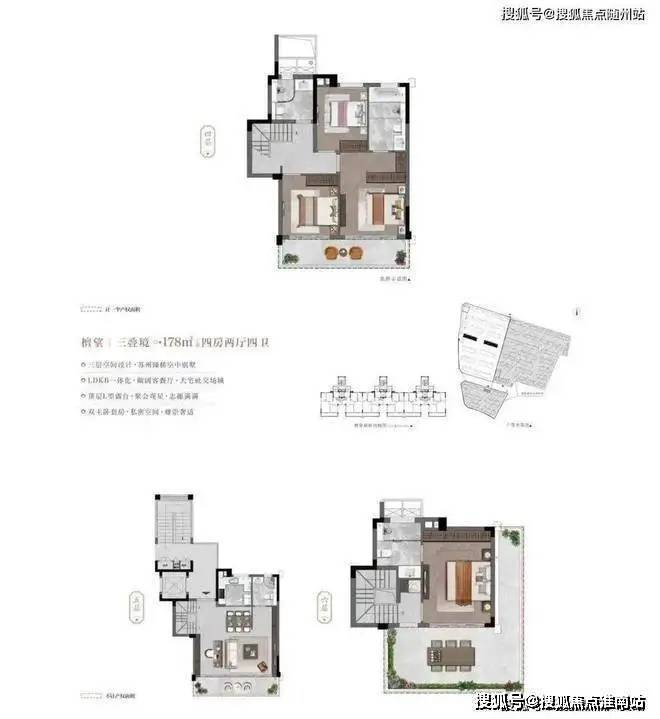 叠墅产品分为上叠中叠下叠,最大178平。