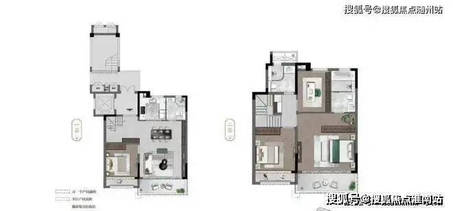 户内楼面高度不一致,错开之处有楼梯联系。但没有完全分为两层。(适合大面积住宅,小户型会显得局促)
