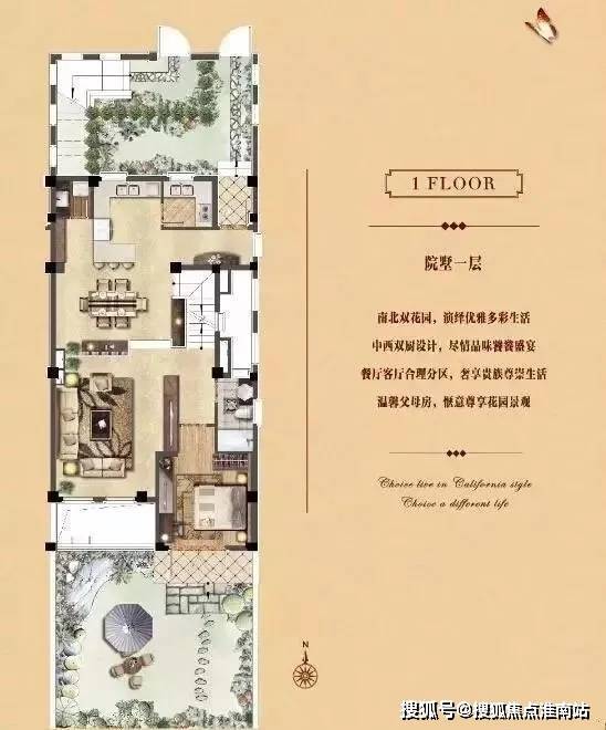 项目力邀国际顶尖团队打造出纯正的南加州风情建筑,暖黄色的外墙、精致的花架矮墙、红色的筒瓦,仿佛来自海岛小镇的一抹温暖阳光,让住户时刻感受度假般的生活环境。