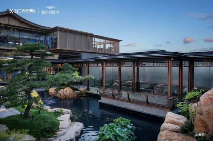 项目园林以“五进礼序”为魂,设水榭、曲廊、听风亭、观鱼池、竹径、赏月台,无围墙式归家动线,推窗见湖,步步皆景;
