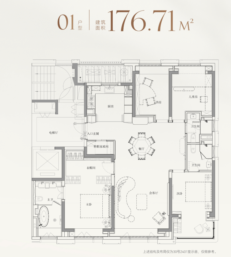 而建面约177㎡01室,则针对性地打造为4房格局,精准契合二胎家庭或三代同堂需求。