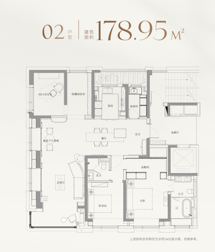 以建面约179㎡的边套为例,并未将北房间局限为常规卧室,而是灵活打造为HIFI音乐室与收藏阅读室,既可作为业主的灵感工作室,也能成为孩子的兴趣天地;