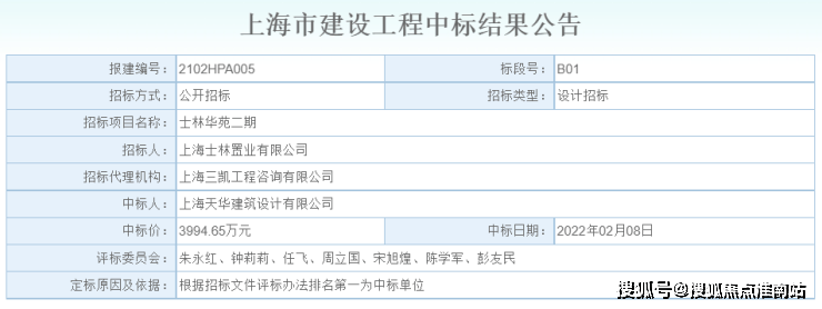2022年2月8日,上海天华建筑设计有限公司以3994.65万元中标士林华苑二期地块设计项目!