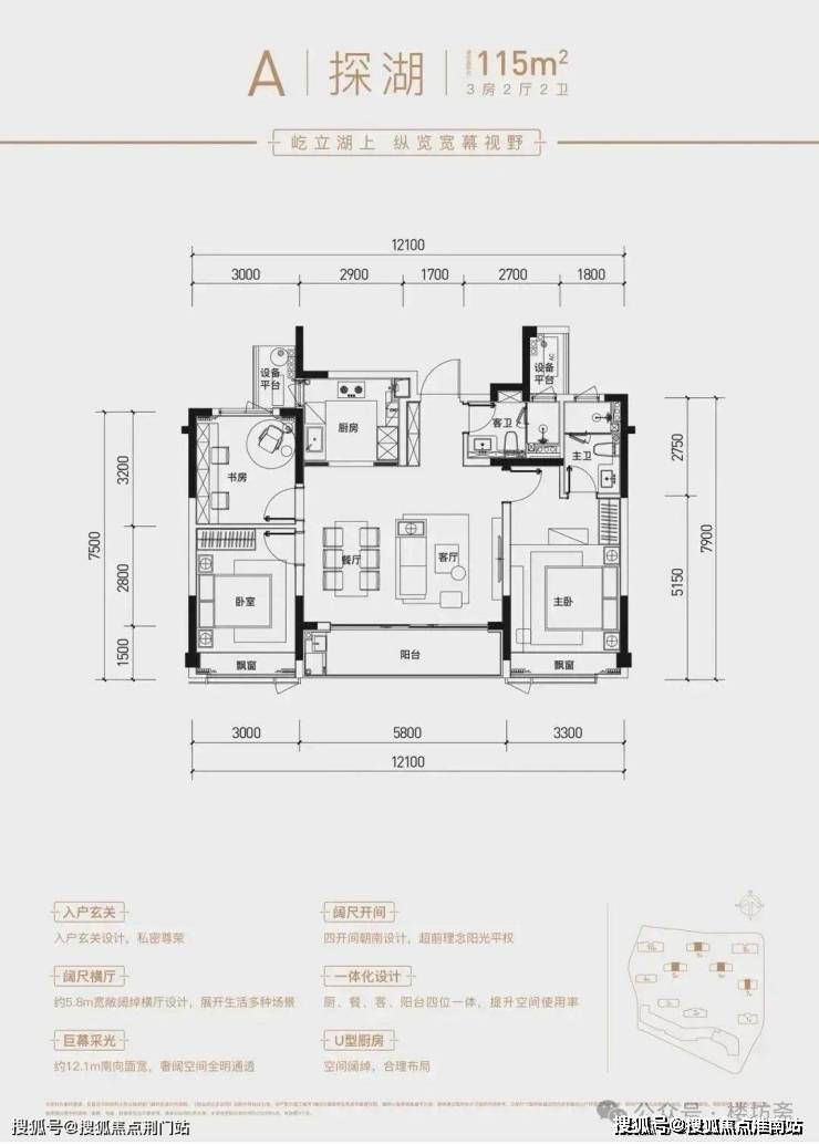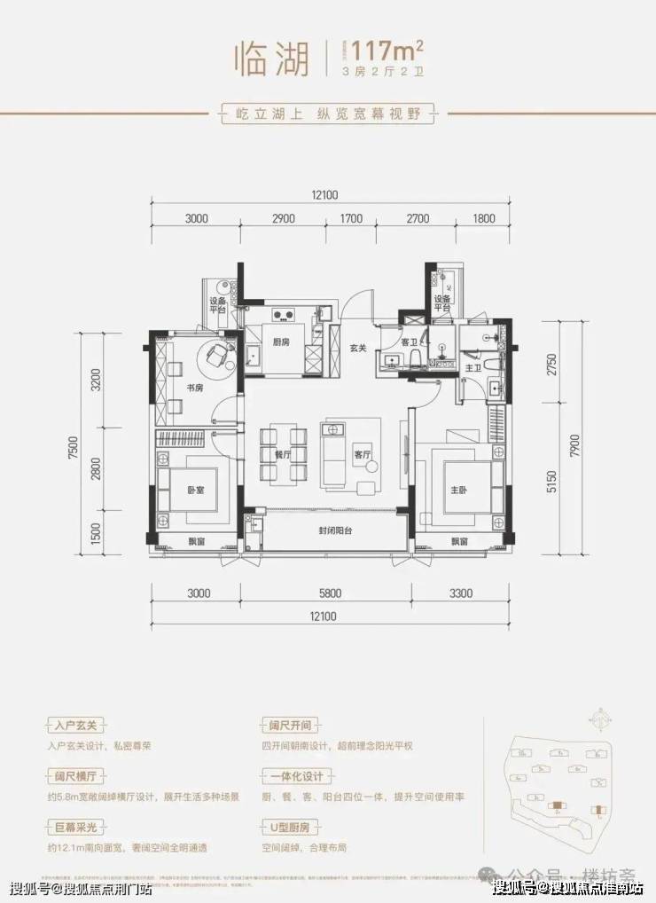 譬如,建面约115方三房两厅两卫,以三开间朝南搭配LDKB一体化阔厅,通过约27方餐客厅与观景阳台无缝串联,尺度彰显气势之外,与公区融合后,衍生出更多社交价值。