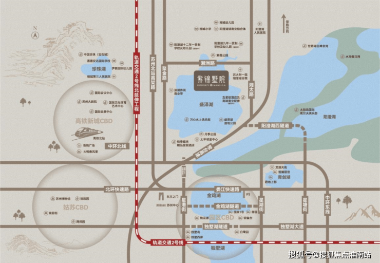 【城市路网】中环北线、苏州北站高架路、阳澄西湖第三隧道(在建)、常台高速等路网交错,直达姑苏古城区、园区等城市板块