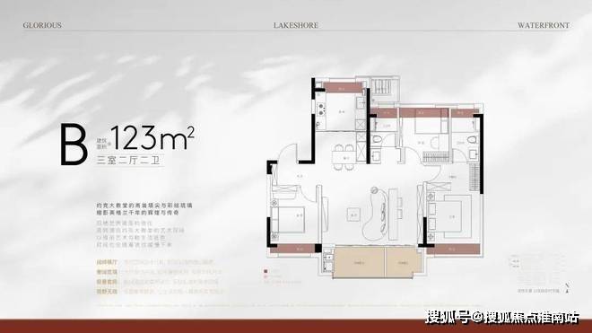 小高层:建面约123㎡三房两厅两卫,客厅面宽4.5米,270°转角飘窗设计9