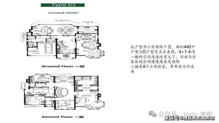 纯地上两层,建面约850㎡(7房4厅6卫)